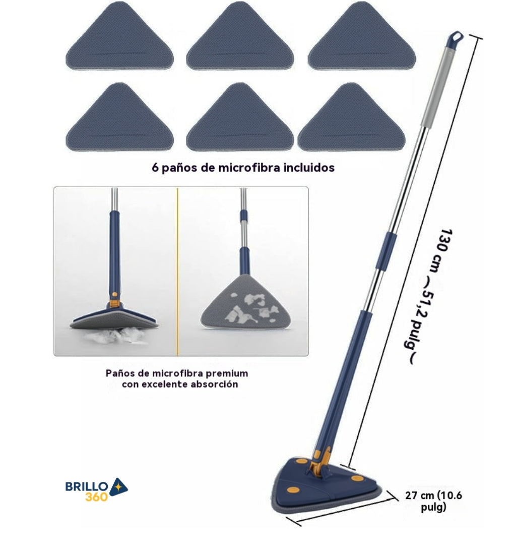 Nuestra fregona 360° ha sido probada en más de 500 hogares y los resultados hablan por sí solos. Su diseño triangular y el sistema autoescurrible permiten una limpieza más rápida, cómoda y eficiente, reduciendo el esfuerzo físico y el tiempo de limpieza hasta en un 40 %.